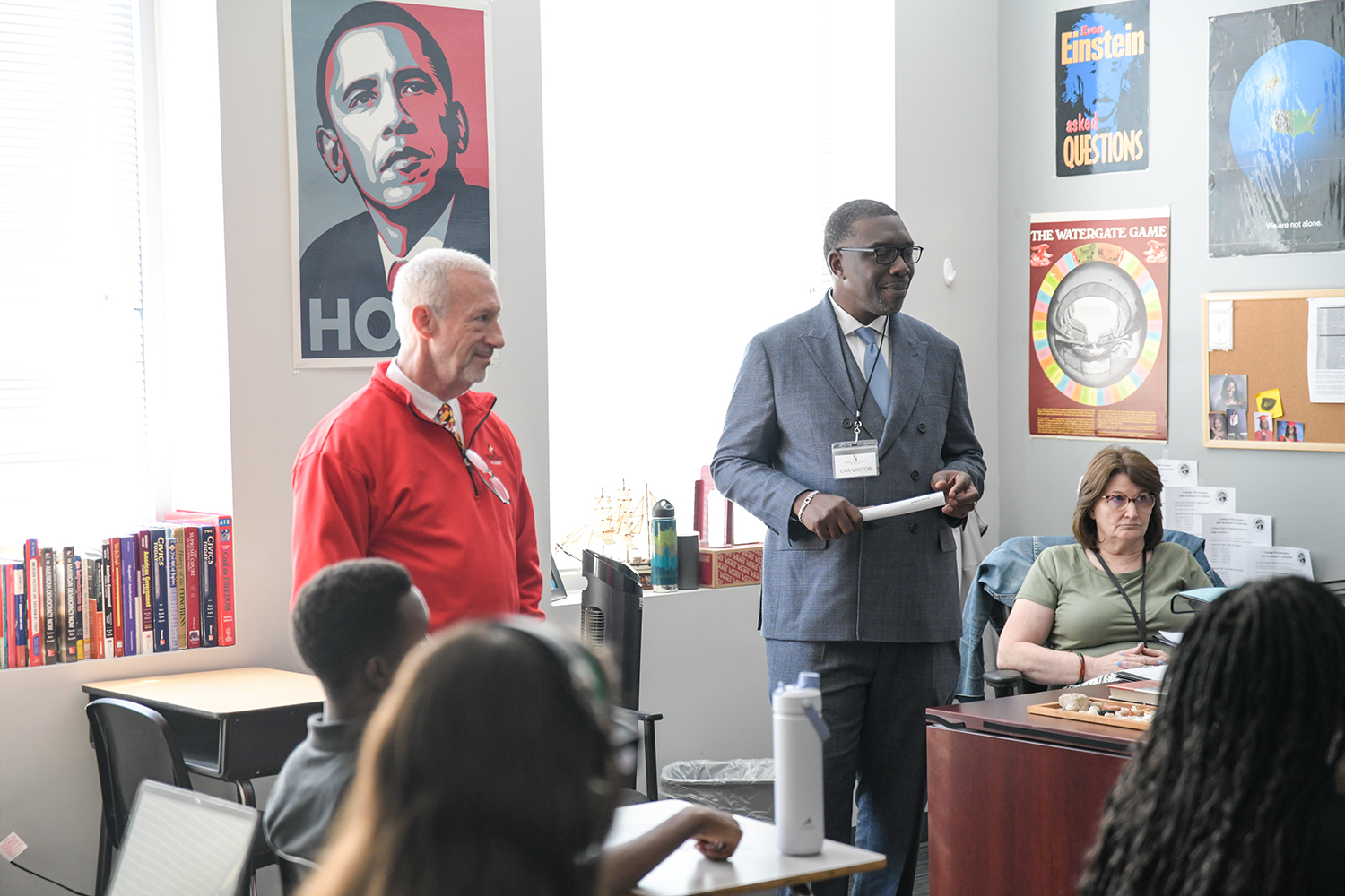 Junior and student ambassador Faridat Ope guided the tour, walking visitors through classrooms and programs that reflect CPA’s focus on college and career readiness. Ope, who hopes to become a certified nurse anesthetist, credited the school’s advanced coursework and supportive environment with keeping her on track.